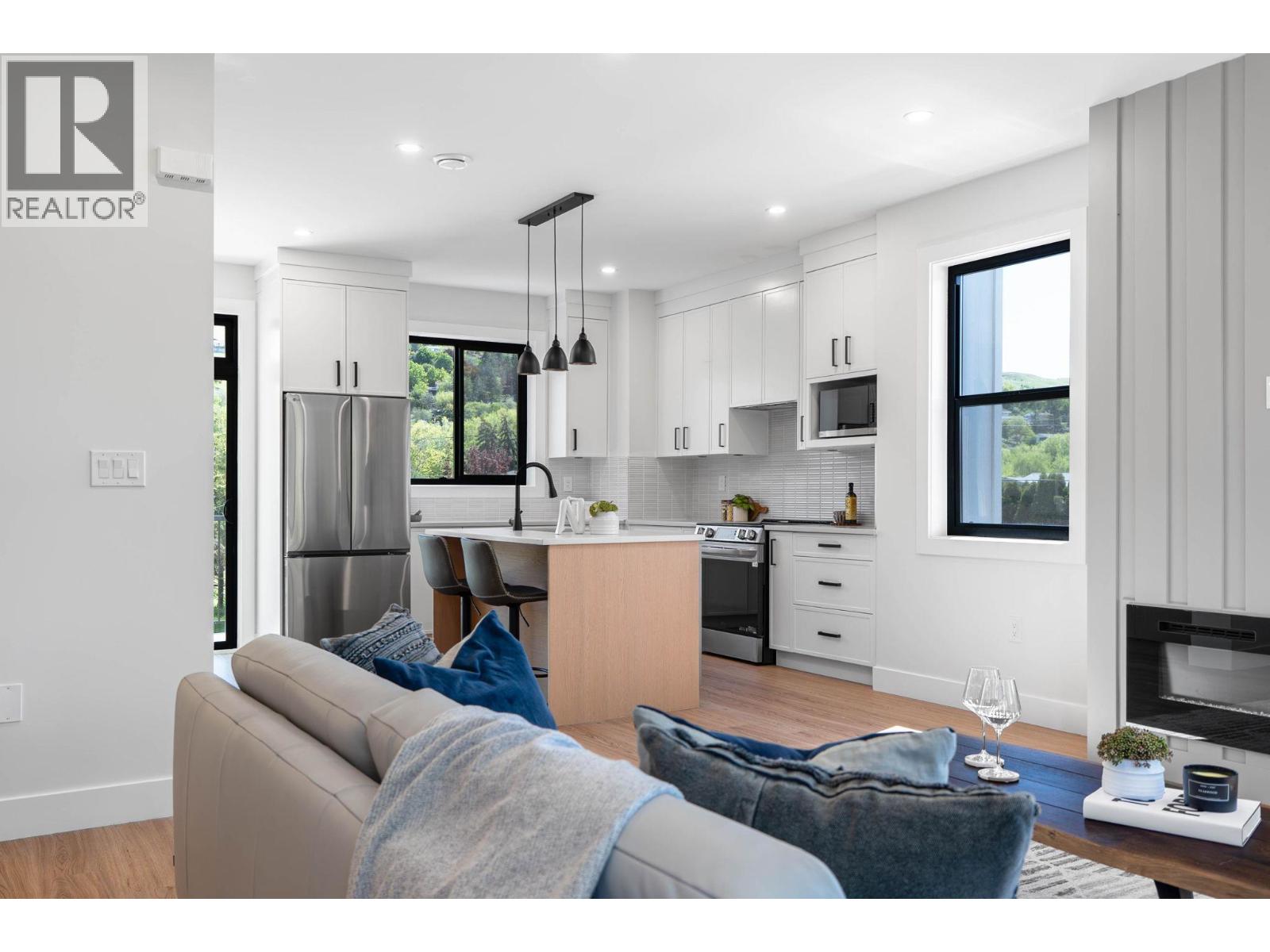 Welcome to this beautifully maintained 3-bedroom, 3-bathroom townhome with a bonus flex room, located in a quiet yet centrally located complex in desirable Lake Country. Built in 2019 and lovingly cared for by the original owners, this end-unit offers added privacy with only one shared wall and a host of thoughtful upgrades. Step inside to find stylish laminate flooring throughout, an inviting electric fireplace in the living area, and a bright, open layout ideal for both relaxing and entertaining. The spacious kitchen and living spaces flow seamlessly, while the flexible lower-level room offers endless possibilities—home office, gym, or playroom. Enjoy the convenience of a double garage and the added bonus of a private, fully fenced yard complete with a charming gazebo—perfect for outdoor dining or unwinding in the evenings. Pet lovers will appreciate the pet-friendly policy with no size or breed restrictions. This move-in-ready home combines comfort, style, and functionality—all in a prime location just minutes from local shops, parks, wineries, and the lake. (id:56537)