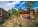 Welcome to this charming 1-acre property that perfectly blends comfort, functionality, and country charm. The home is bright and inviting with vaulted ceilings and large windows in the living room, newer windows throughout, and a spacious kitchen with skylight, dining area, and cozy wood stove. You’ll find two full bathrooms—one with quartz counters and vinyl plank floors, the other with a stylish stand-up tile shower. The primary bedroom opens with a sliding glass door to the yard, and there’s a large laundry room plus a family room roughed in for another wood stove. Outside, the property is fully fenced, gated, and totally flat, offering endless possibilities. A detached smaller workshop in rear has power, the front shop/garage (20x25, built 2008) with wood stove and 100A sub panel, two woodsheds with splitter, and even a chicken coop add to the lifestyle this property offers. Both the house and shop feature WETT-certified wood stoves, making this a warm and practical retreat year-round. (id:56537)