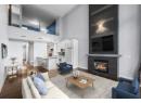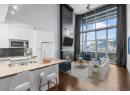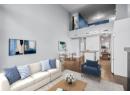 Rare opportunity in the highly sought-after Cannery Lofts, located in the heart of downtown Kelowna. This top-floor, lake-facing unit offers an exceptional blend of style, comfort, and convenience. Featuring 20-foot ceilings and a contemporary loft design, the home includes one bedroom, two bathrooms, and a spacious flex room that can serve as a second bedroom, office, or den. The open-concept living area is bright and airy, with floor-to-ceiling windows, a gas fireplace, and access to a covered patio with lake views. The kitchen is equipped with upgraded appliances, including a gas range. Additional highlights include in-suite laundry, hardwood flooring, newer carpet and window coverings, and fresh paint throughout. The secure concrete building offers one indoor parking stall, bicycle storage, a shared rooftop patio, and excellent security features. Pet permitted with approval. An exceptional downtown lifestyle steps from restaurants, cultural amenities, and the business district. (id:56537)