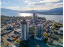 This 2 bedroom, 2 bath PENTHOUSE spans 998 sq. ft. and features a modern natural palette, luxury vinyl plank flooring, and high-end finishes throughout. The bright open-concept layout is framed by walls of windows showcasing sweeping lake, mountain, and city views. The chef’s kitchen boasts UPGRADED Bosch appliances including an induction cooktop, ultra quiet dishwasher, beautiful fridge/freezer and a beverage fridge. There is a large island with bar seating, built-in pantry, charging cubby/coffee station and generous storage, flowing seamlessly into the spacious living area. Step through dual sliding doors to the HUGE 330sqft partially covered deck - perfect for entertaining or unwinding, with a glass railing to take in all of the views. The primary suite includes a walk-in closet and sleek ensuite with walk-in shower, while the second bedroom is paired with a stylish 4-piece bath with tiled tub/shower combo. Enjoy in-suite laundry, pet-friendly living with no height restrictions, two parking stalls (one with EV charger) and storage. Residents have access to world-class amenities including a ROOFTOP POOL and HOT TUB (just a staircase away), outdoor BBQs, fire tables, lounge areas, fitness center, community garden, bocce court, and a dog run with wash station. Downtown living doesn’t get better than this! Just a few blocks from the beach and steps from shops, restaurants, and urban living, Bertram at Bernard offers the ultimate downtown lifestyle. (id:56537)
