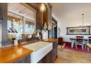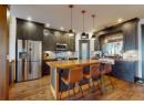This 2018 custom farmhouse showcases quality craftsmanship and thoughtful design throughout. Warm and inviting, this 4-bedroom, 3-bathroom home offers 3,089 sq. ft. of beautifully finished living space. The open-concept main level is ideal for family living and entertaining, featuring vaulted ceilings, a stunning rock-faced gas fireplace, and oversized windows that frame spectacular mountain views. Step outside to the expansive front patio to take it all in. The gourmet kitchen is a showstopper with custom ceiling-height walnut cabinetry, gas range, cherry wood countertops, a live-edge island, farmhouse sink, and pantry. The spacious primary bedroom features vaulted ceilings, in-floor heating, and a luxurious ensuite complete with a soaker tub, Italian-tiled shower, double vanity, and large walk-in closet. The lower level offers a cozy family room with gas fireplace, an impressive “man cave” with a 10-foot live-edge bar, and a generous laundry/hobby room. Outdoors, enjoy a fully fenced, private backyard designed for entertaining—covered patio with gas BBQ hookup, hot tub pad and wiring, a 20’ x 10’ shop, plus mature cherry and plum trees. Additional highlights include alley access with carriage home potential, an oversized heated double garage with space for toys, RV parking, and a driveway accommodating up to six vehicles. Premium upgrades include an air purifier, saltwater softener, full water filtration system, and Navien hot water on demand. (id:56537)