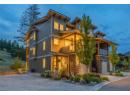 Welcome to The Trails! Backing onto Pincushion Mountain and steps from Hardy Falls and endless scenic trails, this location couples nature with convenience. An executive 9-hole golf course is approved next door, while Beach Avenue’s shops, restaurants, parks, marinas, wineries, and microbreweries are just minutes down the hill. This exceptional end unit presents like a show home. The craftsman exterior with Hardie board siding, rich wood and slate accents, and a stamped concrete entry sets the tone for the quality throughout. Inside, soaring ceilings and expansive windows flood the home with natural light, creating an open, airy atmosphere. The main living level is designed for entertaining, featuring a stunning white kitchen with upgraded cabinetry, quartz countertops, custom backsplash, premium appliances, and refined hardware. The living room is anchored by a cozy natural gas fireplace with a solid wood mantle and elegant shiplap detail. Two inviting covered decks on this level offer private views from both sides of the home. Upstairs offers 3 generous bedrooms and 2 full bathrooms, including a serene primary retreat with vaulted ceilings and transom windows. On the entry level, a large rec room with a 2nd fireplace opens directly to the patio — ideal for guests or seamless indoor-outdoor living. Phantom screens throughout, an oversized tandem garage with abundant storage for all your lifestyle gear, and the peace of mind of a FireSmart community. (id:56537)