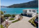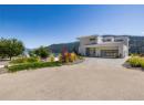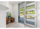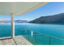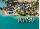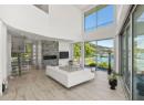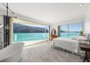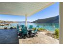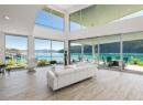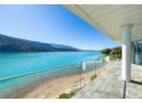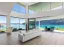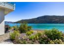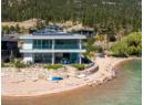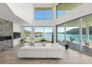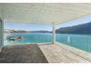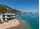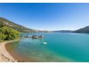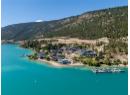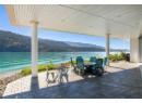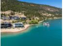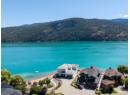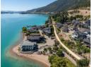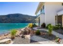 Welcome to 18541 Crystal Waters Rd—an exceptional opportunity in this gated, bare land strata community on Kalamalka Lake. This flat corner lot is the largest in the development, with 130' of lakefront, direct beach access, and a boat lift—offering the ultimate lakeside lifestyle. The Okanagan Rail Trail is in your backyard, providing over 50 km of scenic trails for cycling, walking, and exploring the valley. Inside, massive 10' tall Lift and Slide doors span the front wall and fold away, blending indoor and outdoor living. The spacious kitchen features a large island, mirrored backsplash reflecting lake hues, a walk-in pantry, and premium finishes. Soaring 19' ceilings define the open living area with a gas fireplace, and ceramic tile floors make maintenance easy. A beach bathroom with outside access simplifies water rinsing after lake days. Floating stairs with a glass railing lead upstairs to the primary suite with Nano doors opening to a private deck overlooking the lake. The ensuite includes a standalone tub, frameless shower, dual sinks, and walk-in closet. Two more bedrooms connect to a wraparound deck with lake views. Additional features include solar panels, hot water on demand, built-in vacuum, oversized double garage (or 3 car tandem) with mezzanine storage, 240V EV charger, crawl space, fruit trees (2 apple/plum/nectarine/cherry), and a raised garden bed. The strata fee is $600/month, and two pets of any size are permitted. (id:56537)