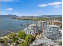 Discover resort-style living at Aqua Waterfront Resort, perfectly positioned in Kelowna’s sought-after Lower Mission just steps from the lake. This 2-bedroom, 2-bathroom 13th-floor unit features 1,057sq. ft. of thoughtfully designed space with expansive windows, high ceilings, and a bright open-concept layout. A split-bedroom design provides ideal privacy, while the northwest-facing covered balcony captures lake, city, and mountain views. The modern kitchen showcases two-toned cabinetry, quartz countertops, a waterfall island, premium stainless steel appliances, and a wine fridge. The living space is enhanced by wide-plank flooring and abundant natural light. The primary suite offers a spa-inspired ensuite, while the second bedroom is perfect for guests or a home office. Additional features include full-size laundry, upgraded storage, fiber-optic wiring, and efficient VRV heating/cooling. Includes 2 secure parking stalls and a storage locker. Pet-friendly with no size restrictions. Enjoy resort-style amenities: outdoor pool & hot tub, fireside lounge, 2-storey fitness centre, yoga studio, co-working space, BBQ area, pet wash, and more. Optional Aqua Boat Club access adds to the ultimate Okanagan lifestyle. (id:56537)