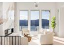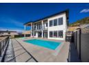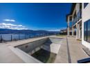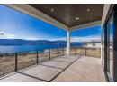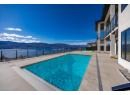 Luxury living with captivating lake views! Perched on Vineyard Drive in the prestigious Lakeview Heights, this exquisite new home offers 4643 sq. ft of refined living space including a private suite for guests or extended family. Sun-filled main level boasts high ceilings and expansive windows that frame breathtaking lake views. A marble-clad fireplace wall, a floor-to-ceiling glass wine display and wet bar add to the home’s entertaining appeal. The chef-inspired kitchen is appointed with top-tier appliances, dual-finish cabinetry, a seamless marble island and a fully equipped butler’s pantry offering ample storage and prep space. Full-height nano doors create a seamless indoor-outdoor flow to a covered terrace overlooking a private oasis with an automated saltwater pool, sunken hot tub and putting green. The luxurious primary features elegant wainscoting, a fireplace, a walk-in dressing closet and a spa-inspired ensuite. Two additional spacious bedrooms complete the main level. Designed for both relaxation and entertaining, the lower level presents an elegant floating staircase, a marble-encased wet bar and an expansive lounge and games area. A den and two bedrooms round out this stylish living space, all with walk-out access to the poolside terrace. Expertly crafted by LIV Custom Builders, this residence on .25 acre blends refined elegance with modern appeal, ideally situated near amenities and capturing spectacular lake views. Pool water+hot tub/water digitally enhanced. (id:56537)