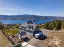 Perched above the Naramata Bench sits this once in a lifetime, completely private, legacy property on 17.15 acres with epic views! Built in 2016 this 4386sqft home has 4 bedrooms & 4 bathrooms with views from every window. As you enter the home you’ll notice the 10’ ceilings, hardwood floors, natural light, & views. The large living room has a stunning Guillotine door wood fireplace, the gorgeous dining room has built ins, & both rooms have doors out to the beautiful front patio. The classic farmhouse style kitchen features quartz counters, gas stove, center island, tons of cabinetry, & access out to the South facing deck with BBQ adjacent to the kitchen garden beds. Off the kitchen is a 2nd family room with a cozy propane fireplace & 2 sets of patio doors for indoor/outdoor living. The upstairs has 10’ ceilings, laundry, a large guest room, huge kids room that could be divided into two, and the stunner primary suite complete with walk in closet, gorgeous ensuite with soaker tub and shower & double vanities + a private deck to take in the sunsets. The ICF basement has 9’ ceilings & features a rec room big enough for a pool table, a blaze king wood stove, & a wine bar. Theres also a 4th bedroom, bathroom, & an office. The irrigated yard has about a .5 acre fenced with garden beds & a chicken coop, plenty of room for a pool, + 2 acres behind the house in a field. Live with total privacy & access to three blind mice bike park, frisbee golf, KVR, 3 Mile Beach & pump track. (id:56537)